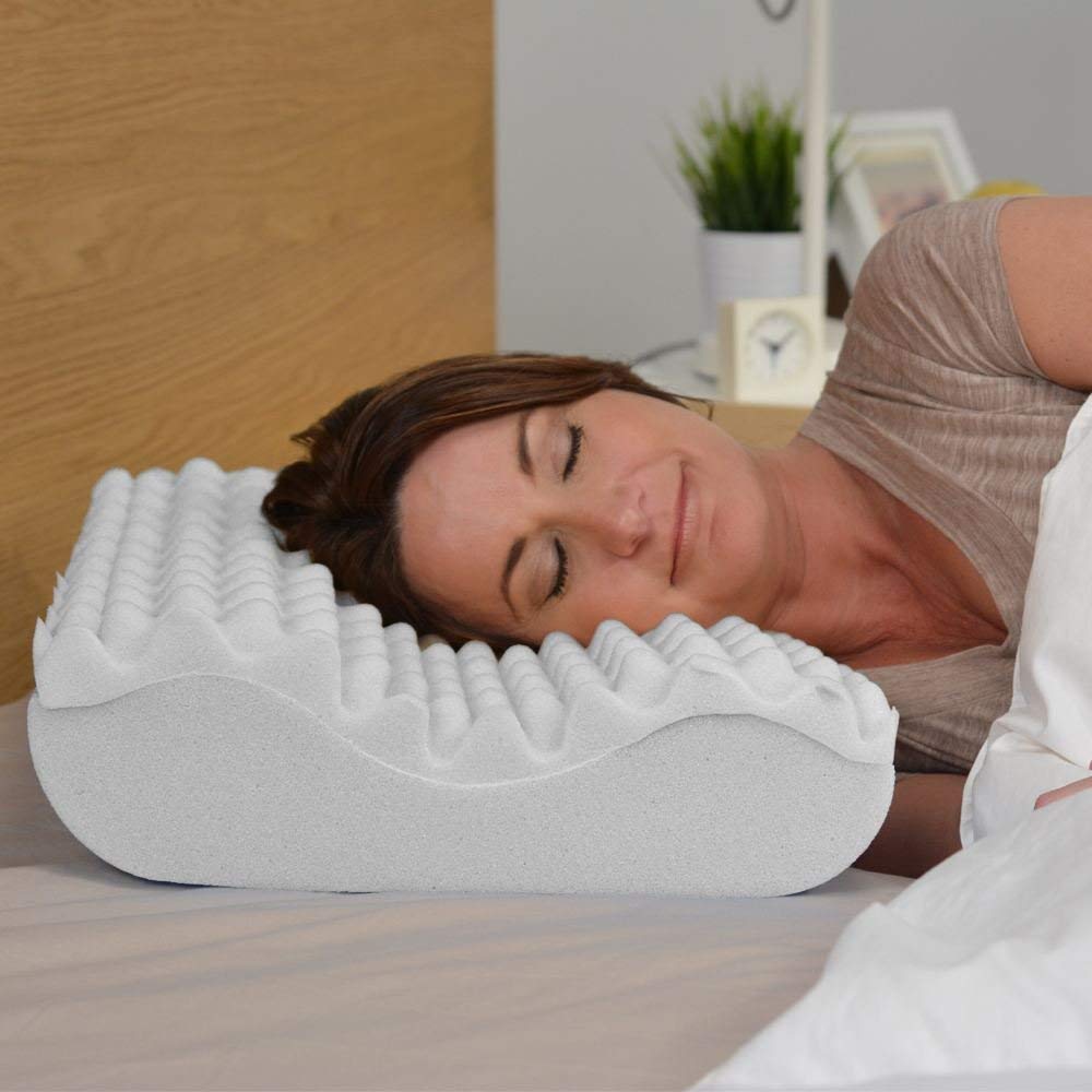 With an egg crate design that is often searched for, this cervical pillow makes an affordable and great first pillow for those who are looking to obtain relief from aches and pains, morning neck stiffness, muscle spasms, tension and arthritis, while helping to restore the natural cervical curve of your neck during sleep and rest. Light enough and easily handled to be used as a neck support in your favorite recliner or to take when sleeping over or on vacation to ensure your neck will not suffer.